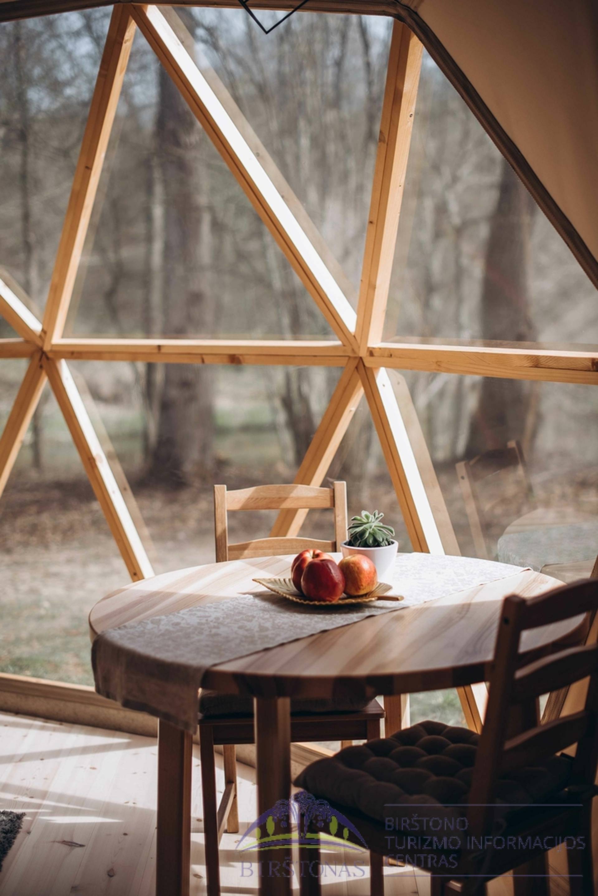 On the banks of the Verknė River, we have created five cottages of exceptional shapes and design for your rest, where you will feel a small part of Nature. The Yurt, the Great and the three Small Domes are equipped with all amenities and have private patios with barbecue facilities outside. The cottages are good, warm and cozy all year round!