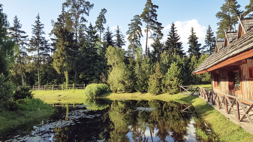 Nur Falken warten auf Ruhe, Zelten für gemütliche Feiern umgeben von Wäldern im Regionalpark Nemunas Kilpai.