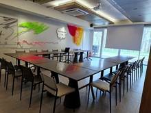 Zusammenarbeit und Besprechungen: Konferenzraum (bis zu 25 Personen) und Gemeinschaftsarbeitsbereiche für Gäste.