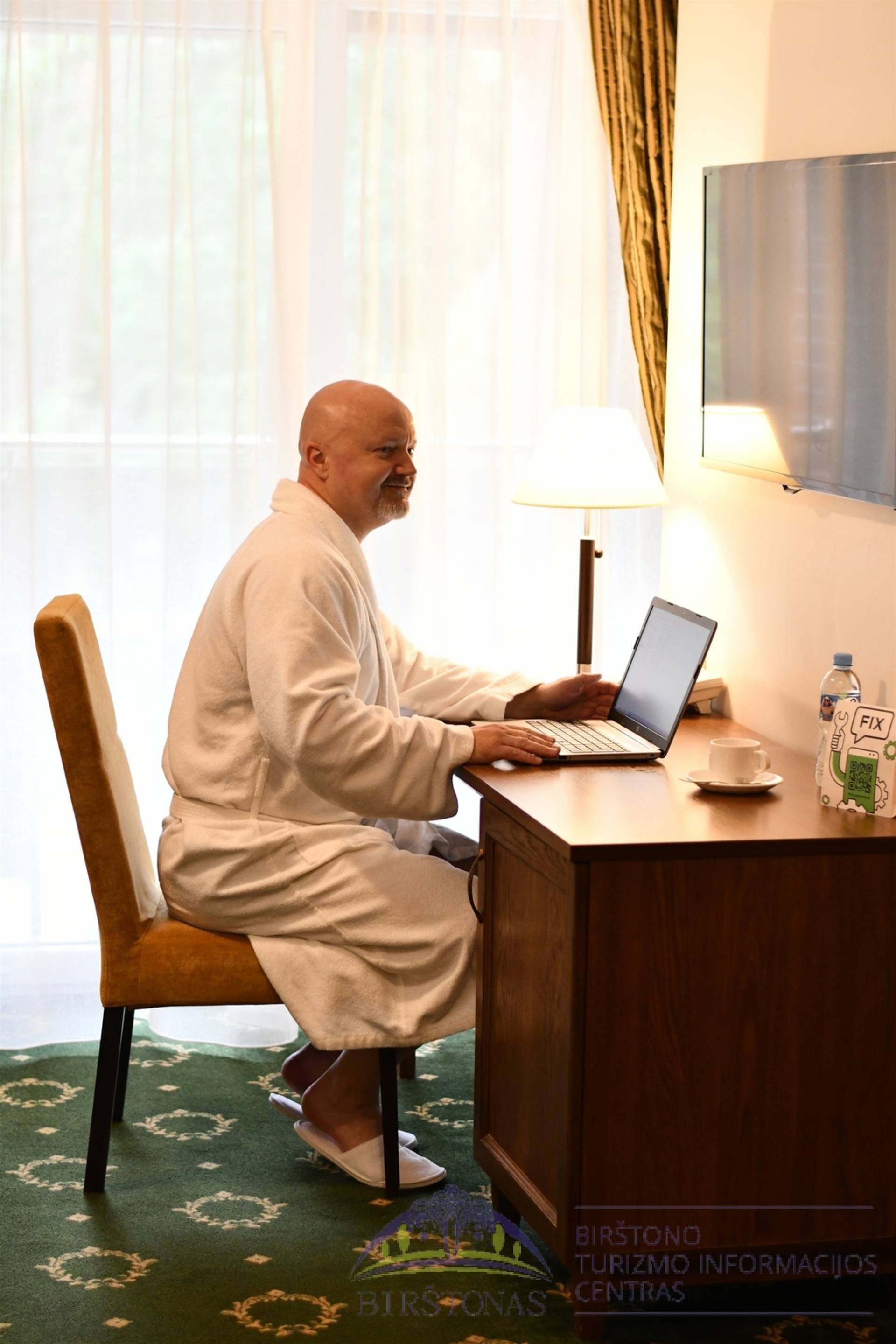 Arbeiten und Wohnen: Geräumige Zimmer (von Standard-Einzel- und Doppelzimmern über Familienzimmer und Mini-Suiten bis hin zu Apartments mit zwei Schlafzimmern), Schreibtische, ausreichend Beleuchtung und Glasfaser-Internet. Sie können sowohl im Zimmer als auch im ruhigen Aufenthaltsraum arbeiten. Für längere Aufenthalte bieten wir flexible Preise und individuelle Arrangements an.