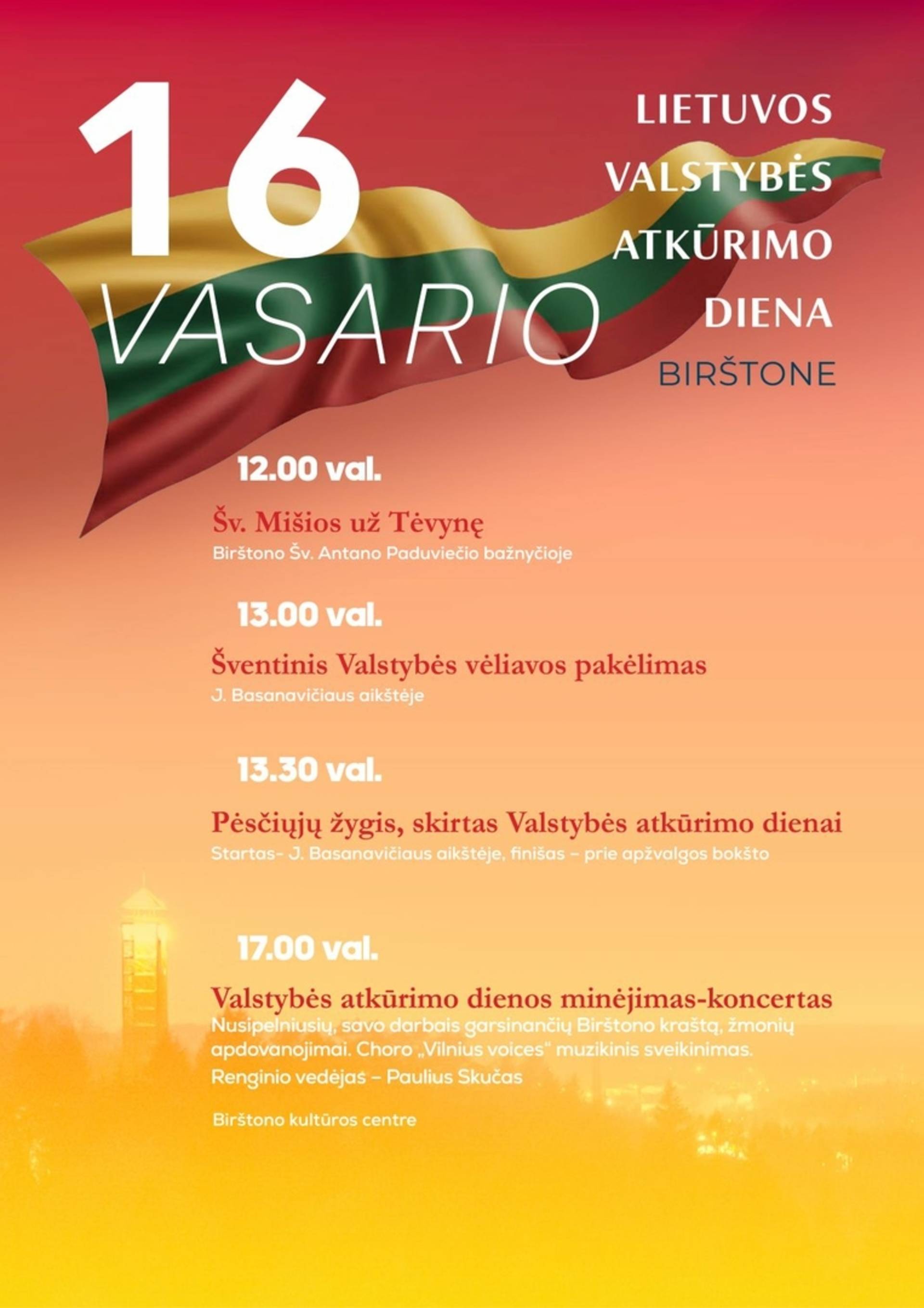 17:00 Birštonas Cultural Center (Jaunimo g. 4) Celebration of the Restoration of the State Day - concert. People who have made the Birštonas region famous with their work