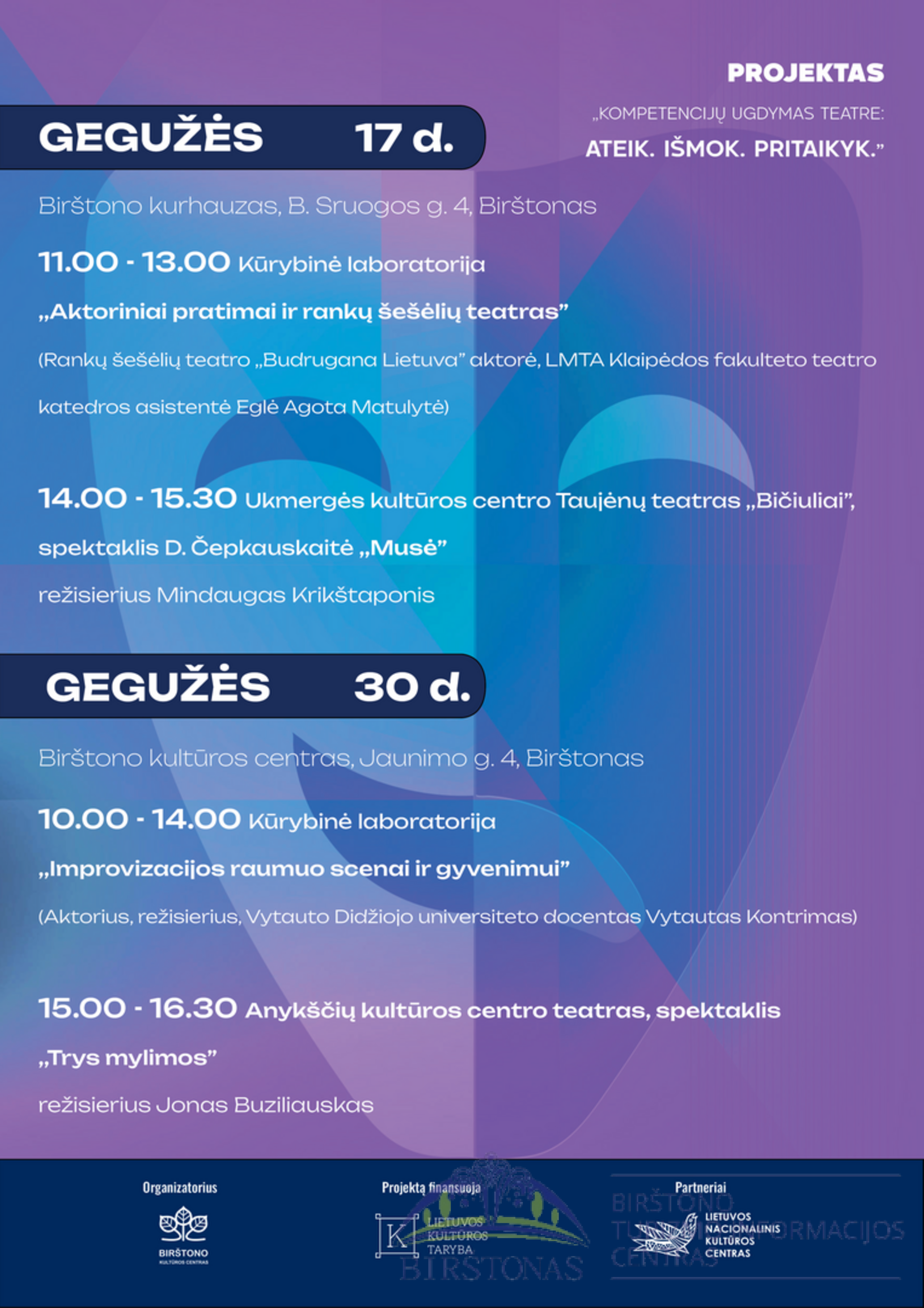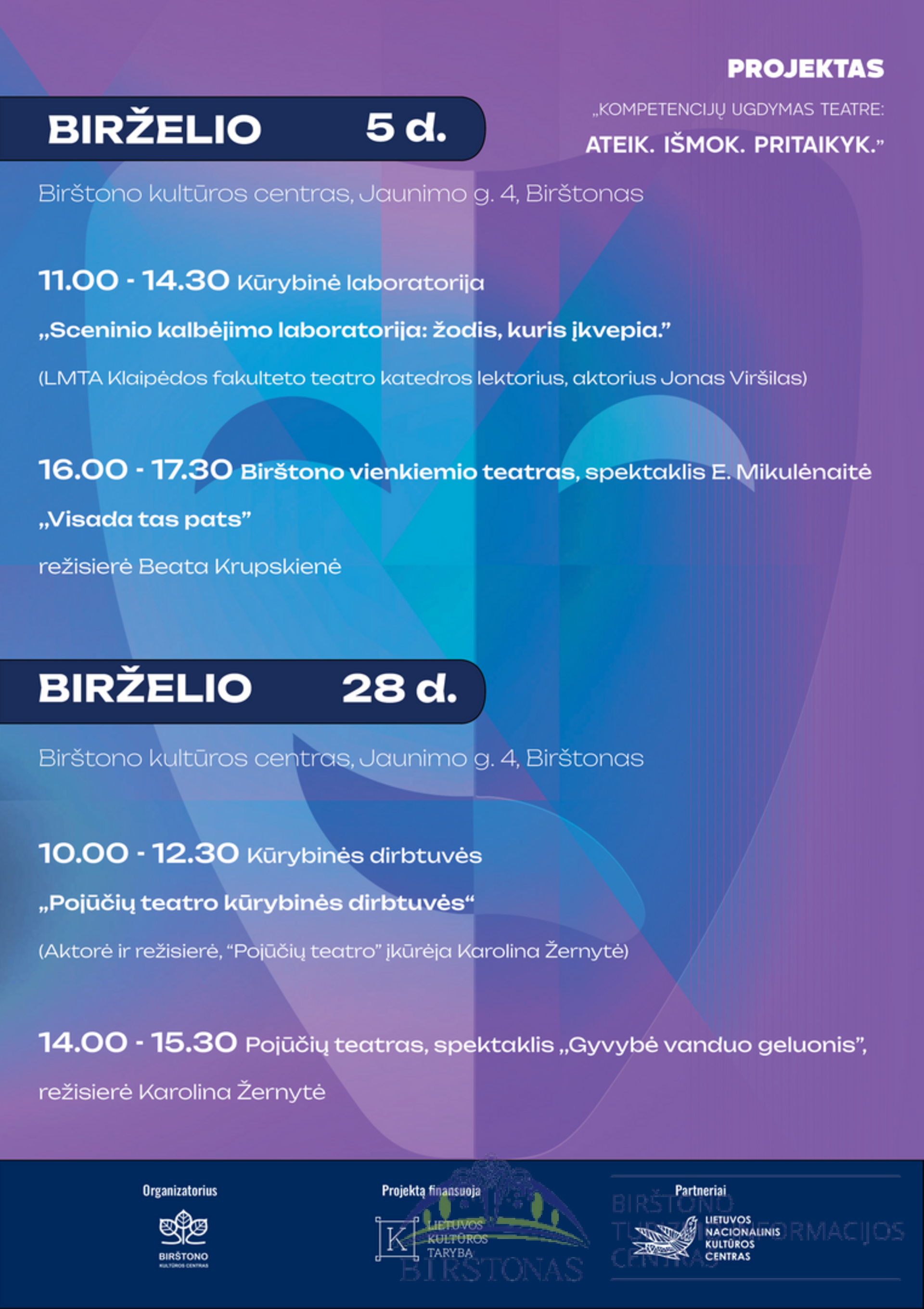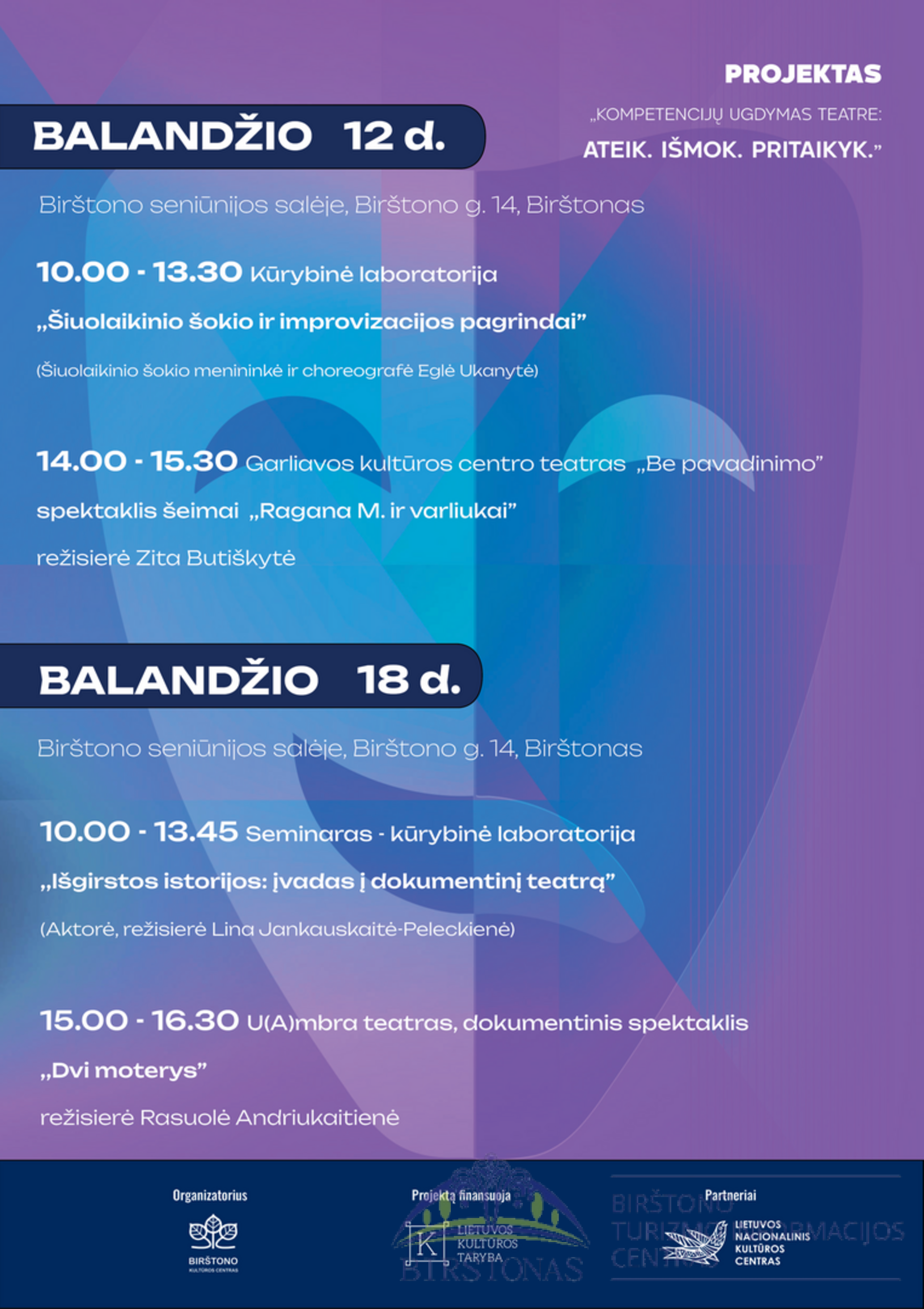 Projekto „Kompetencijų ugdymas teatre: Ateik. Išmok. Pritaikyk“ programa