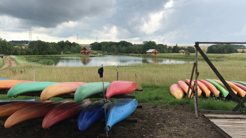 Poilsiavietė, baidarių nuoma įsikūrusi ant Verknės upės kranto.