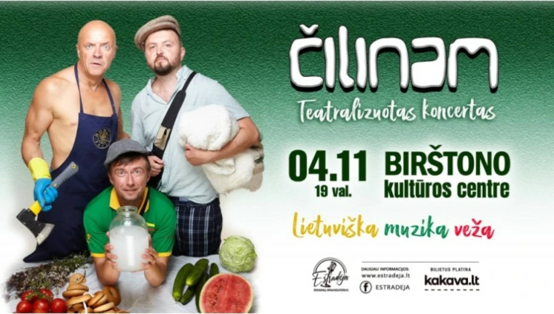 Trys Lietuvoje puikiai žinomi žmonės: R. RUDOKAS, M. JAMPOLSKIS IR STANO kviečia balandžio 11 d. 19 val. Birštono kultūros centre į teatralizuotą grupės „ČILINAM” koncertą „Lietuviška muzika veža“!