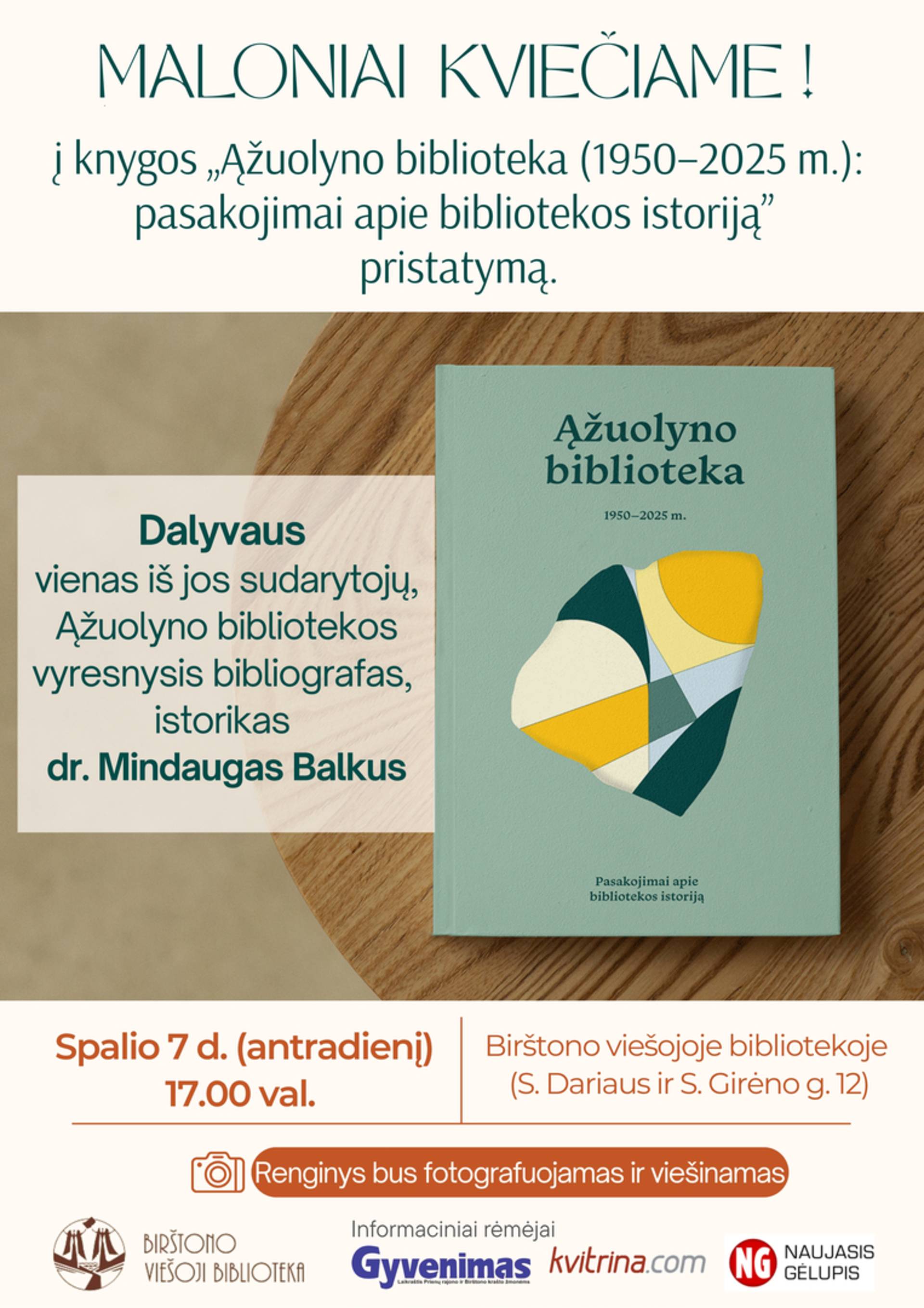 Knygą pristatys vienas iš jos sudarytojų, Ąžuolyno bibliotekos vyresnysis bibliografas, istorikas dr. Mindaugas Balkus.