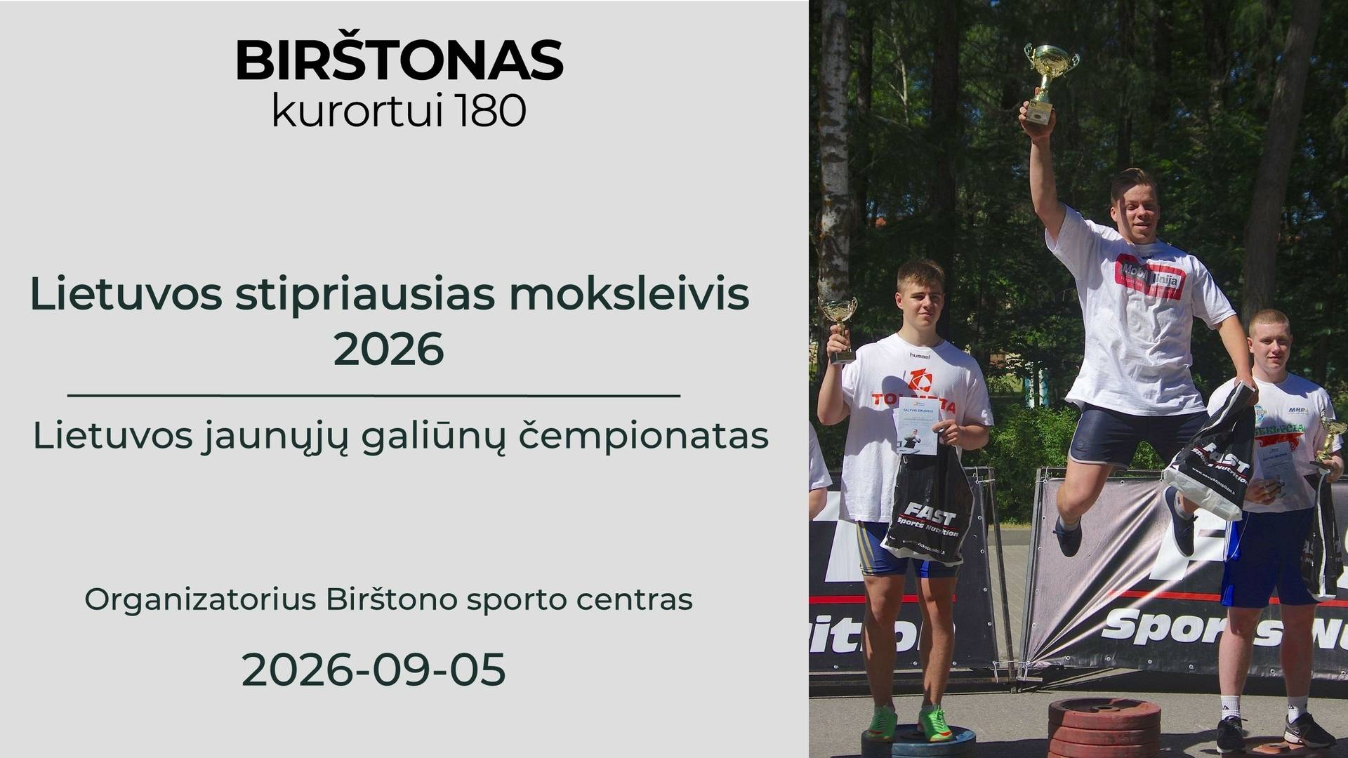 Rugsėjo 5 d. Lietuvos jaunųjų galiūnų čempionatas „Lietuvos stipriausias moksleivis 2026“