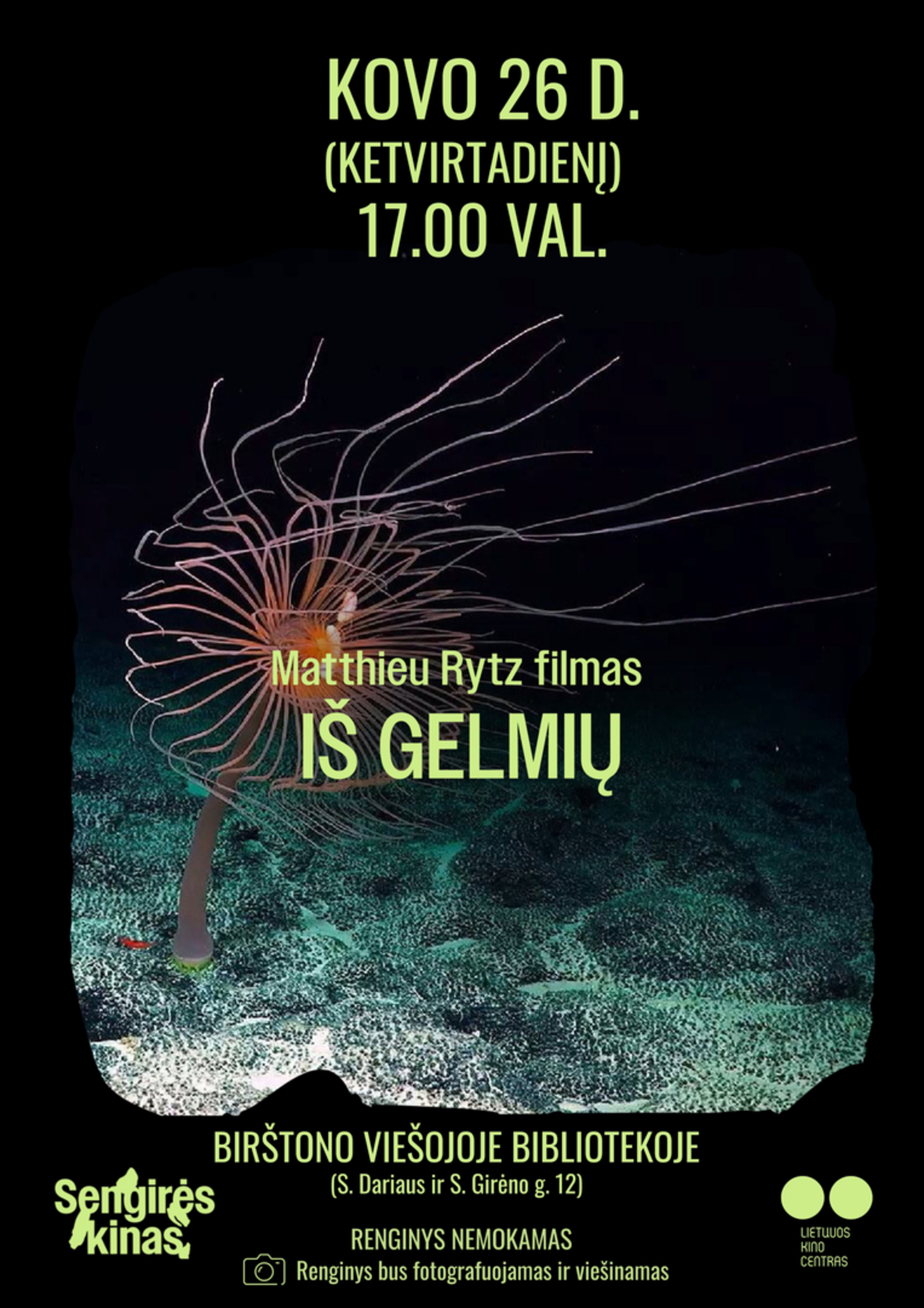 Kiną ir aplinkosaugą jungiantis projektas „Sengirės kinas“ kviečia į filmo peržiūrą Birštono viešojoje bibliotekoje. Kovo 26 d. 17:00 val. bus rodomas dokumentinis filmas „Iš gelmių“.