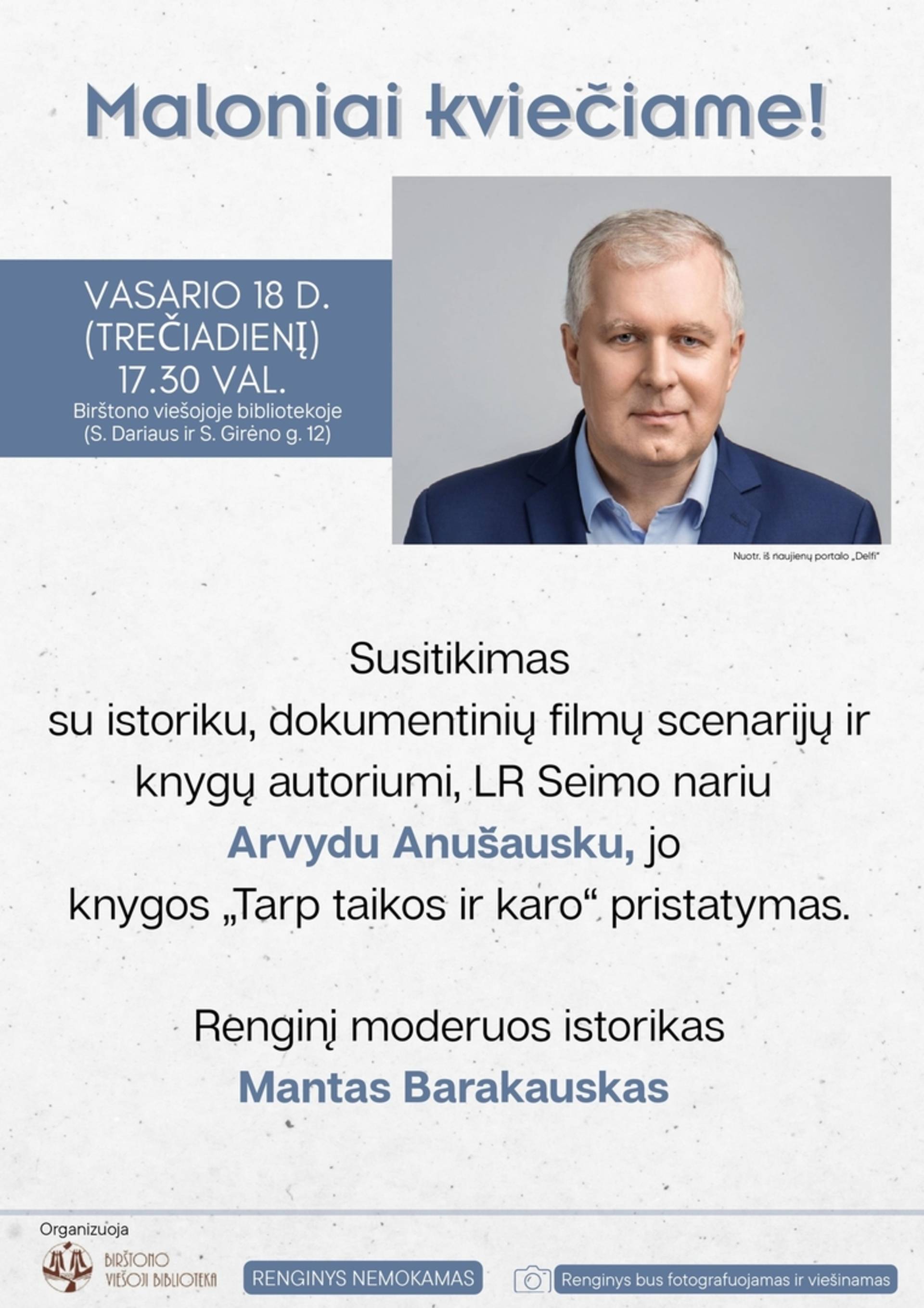 Susitikimas su Arvydu Anušausku, knygos „Tarp taikos ir karo“ pristatymas